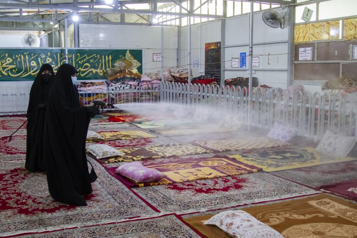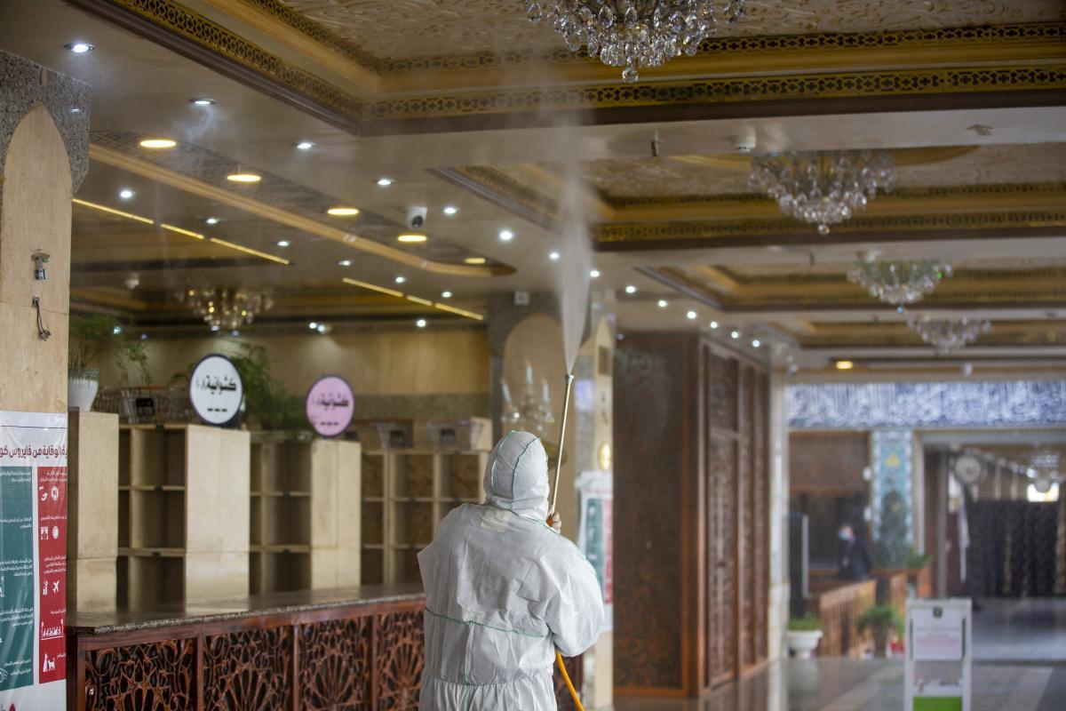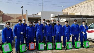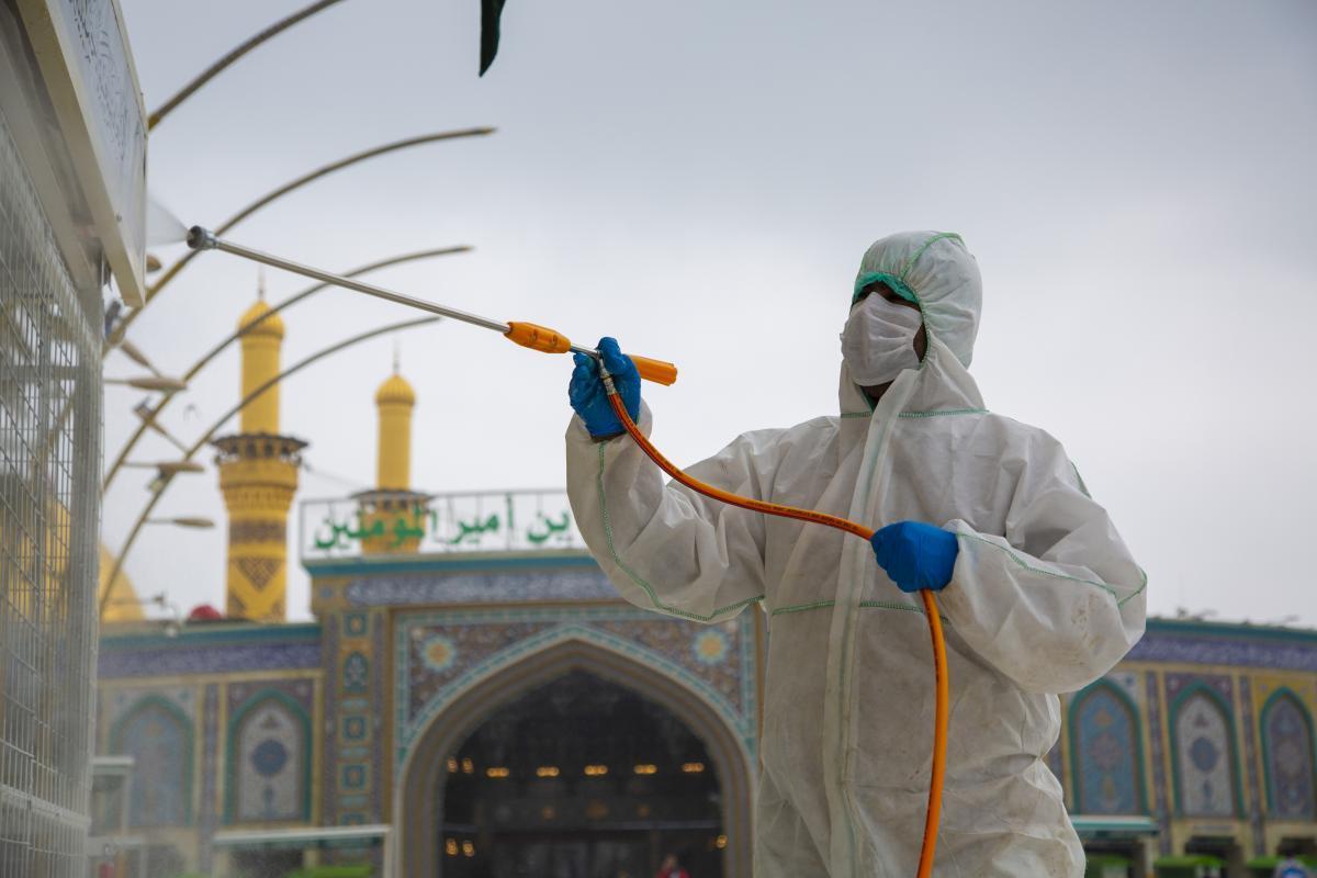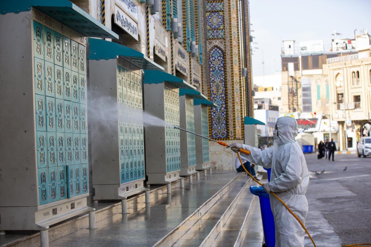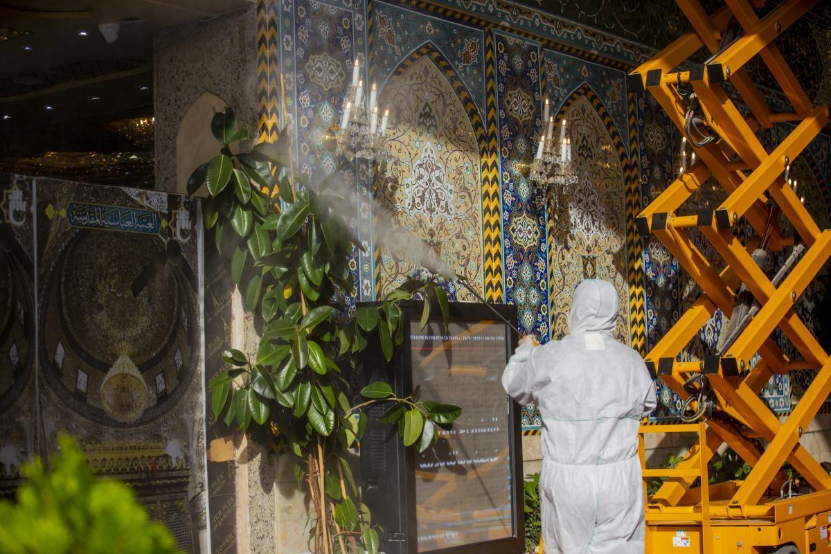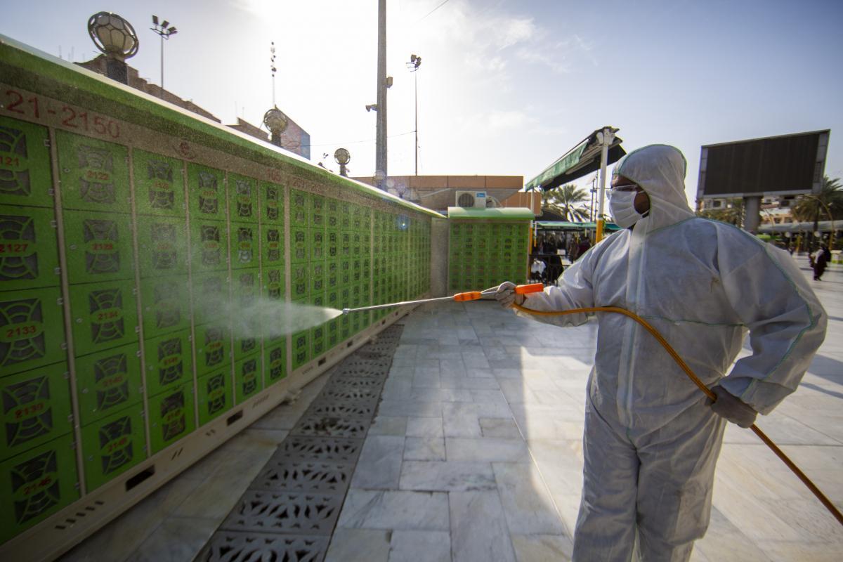 ضمن الإجراءات الوقائيّة التي اتّخذتها العتبةُ المقدّسة للحدّ من انتشار فايروس كورونا المستجدّ، تمّ تشكيل فريق عملٍ متخصّص تحت إشراف لجنةٍ طبيّة للقيام بأعمال التعفير والتعقيم، وكان العمل متواصل ومستمرّ حتّى إكمال كافّة ما كلّفت به من قِبل اللّجنة، وقد شملت حملة التعفير الأزقّة والشوارع الرئيسيّة والفرعيّة للمدينة القديمة وحسب قواطع العمل، وكان يتمّ التحرّك عليها تباعاً وصولاً الى المداخل الرئيسيّة للمدينة ومن ثم المباشرة بحملات التعفير والتعقيم التي انطلقت في مختلف مدن البلاد وتنفيذ حملات في المحافظات من خلال ممثلياتها في كل من (ديالى – كركوك – بابل - شمال بابل - النجف الأشرف - شمال البصرة – البصرة/ المركز - صلاح الدين/ بلد - بغداد/ الرصافة – بغداد/ الكرخ - السماوة - الكاظميّة - ذي قار - الديوانيّة) وقد قطعت شوطاً في تعفير الاماكن العامة والدوائر والاحياء والطرق وأماكن التجمعات وغيرها من المواقع المهمة، وقد تمّ تجهيز الفريق بمعدّاتٍ وبدلاتٍ مخصّصة لهذا الغرض وتكون عملية التعفير والتعقيم باستخدام مواد خاصة حددتها اللجنة زودت بها من قبل شركة خير الجود تتلاءم وطبيعة هذه المنشئات الخدمية تبعا لنسب معينة مصرح بها من قبل الجهات ذات العلاقة.