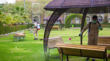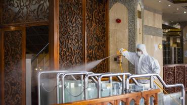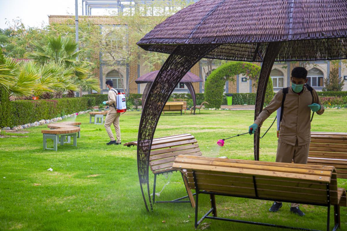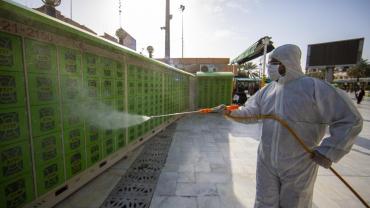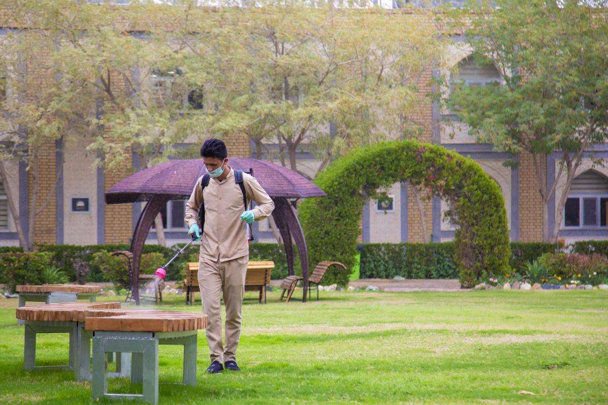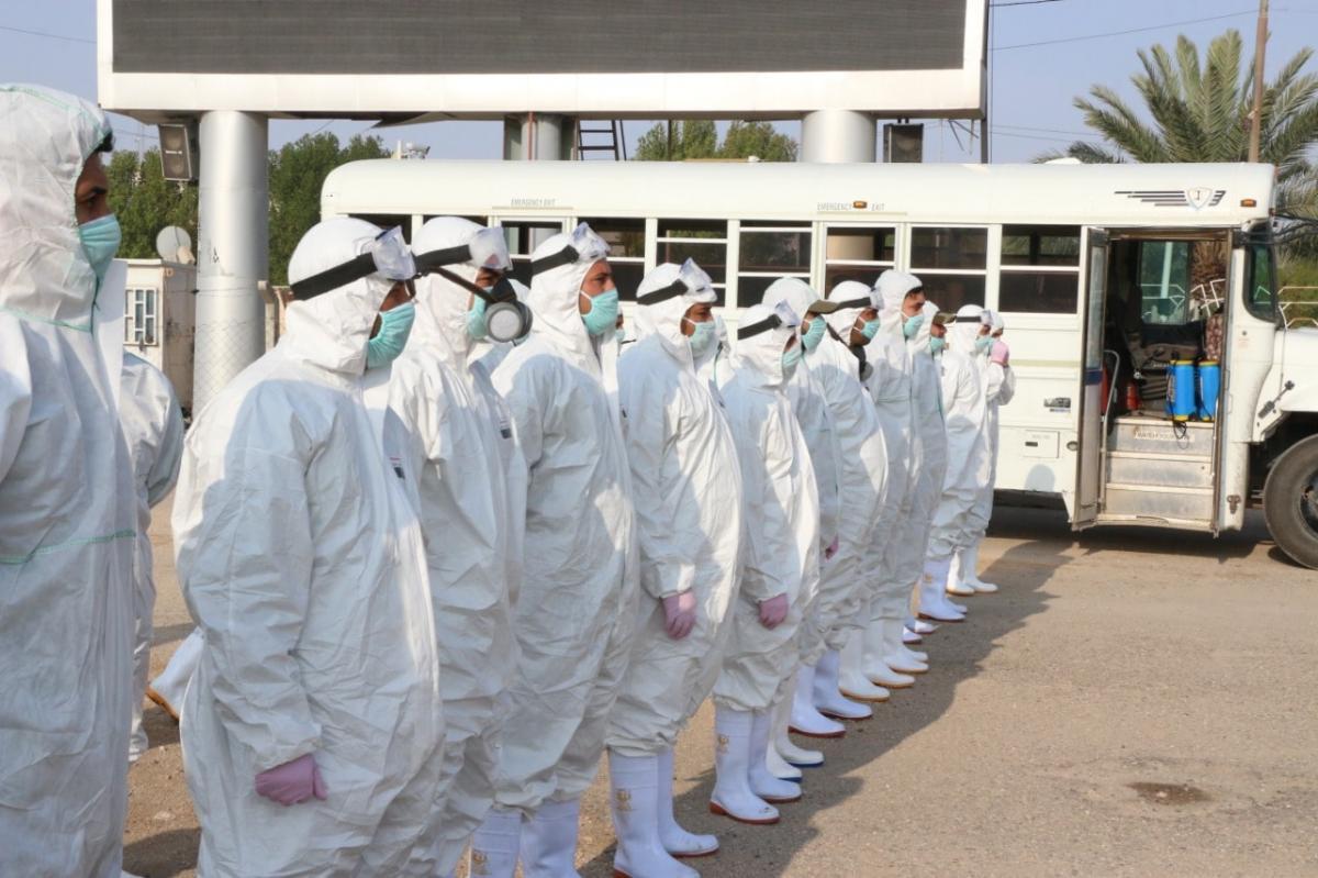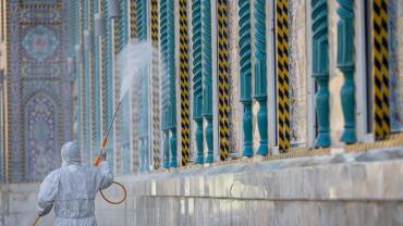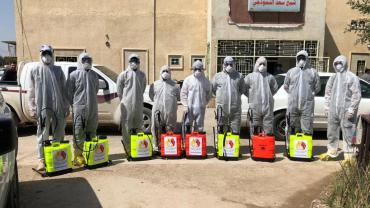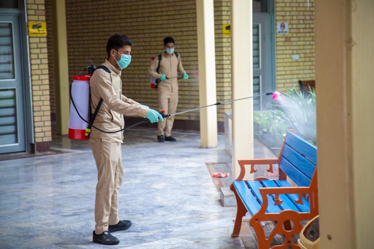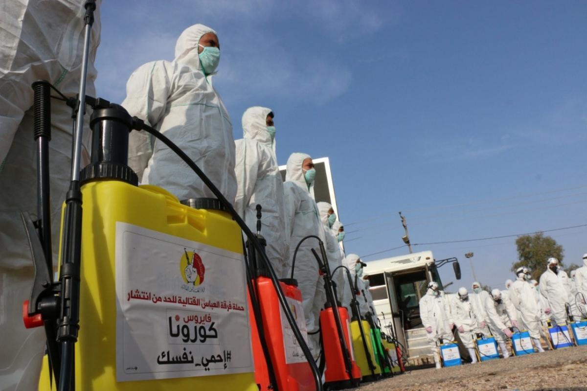ضمن الإجراءات الوقائيّة التي اتّخذتها العتبةُ المقدّسة للحدّ من انتشار فايروس كورونا المستجدّ، تمّ تشكيل فريق عملٍ متخصّص تحت إشراف لجنةٍ طبيّة للقيام بأعمال التعفير والتعقيم، وكان العمل متواصل ومستمرّ حتّى إكمال كافّة ما كلّفت به من قِبل اللّجنة، وقد شملت حملة التعفير الأزقّة والشوارع الرئيسيّة والفرعيّة للمدينة القديمة وحسب قواطع العمل، وكان يتمّ التحرّك عليها تباعاً وصولاً الى المداخل الرئيسيّة للمدينة ومن ثم المباشرة بحملات التعفير والتعقيم التي انطلقت في مختلف مدن البلاد وتنفيذ حملات في المحافظات من خلال ممثلياتها في كل من (ديالى – كركوك – بابل - شمال بابل - النجف الأشرف - شمال البصرة – البصرة/ المركز - صلاح الدين/ بلد - بغداد/ الرصافة – بغداد/ الكرخ - السماوة - الكاظميّة - ذي قار - الديوانيّة) وقد قطعت شوطاً في تعفير الاماكن العامة والدوائر والاحياء والطرق وأماكن التجمعات وغيرها من المواقع المهمة، وقد تمّ تجهيز الفريق بمعدّاتٍ وبدلاتٍ مخصّصة لهذا الغرض وتكون عملية التعفير والتعقيم باستخدام مواد خاصة حددتها اللجنة زودت بها من قبل شركة خير الجود تتلاءم وطبيعة هذه المنشئات الخدمية تبعا لنسب معينة مصرح بها من قبل الجهات ذات العلاقة.