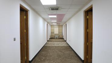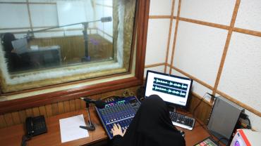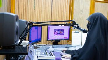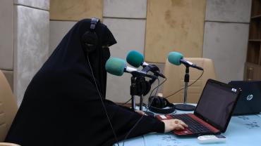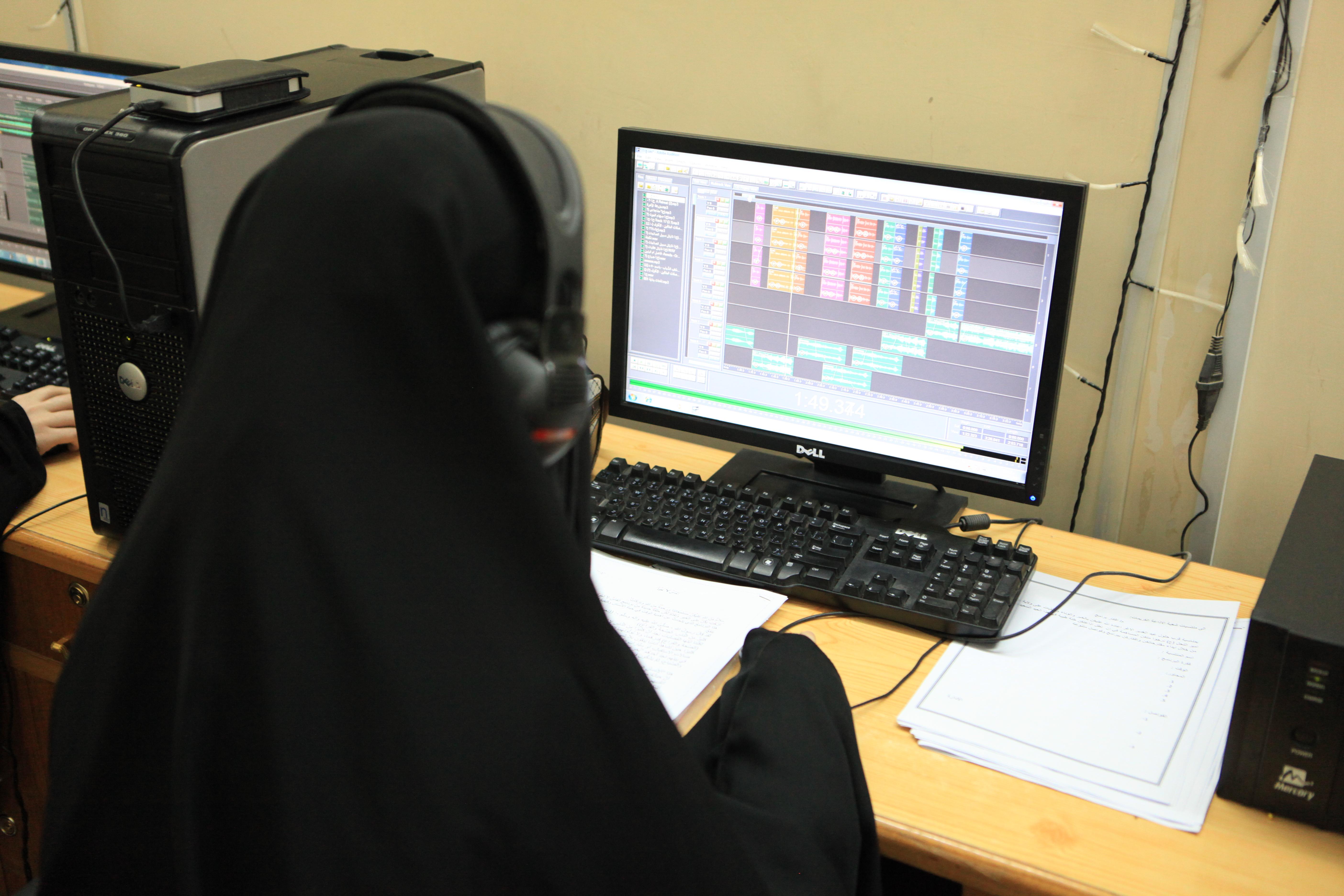 تبلغ مساحة المبنى (400 م 2)، تمّ وضع التصاميم له بما يلائم عمل الإذاعة وخصوصيّاتها، باعتبار أنّ الكادر نسويٌّ بشكلٍ كامل، غُلّفت الواجهة الأمامية للمبنى بمادة الكوبون ومن الداخل بالمرمر باستثناء الاستوديوهات، وزُوّد المشروعُ بمنظومات للكهرباء والحريق والإنذار المبكر، والمنظومات الأخرى المستخدمة هي منظومات الستلايت والمراقبة الإلكترونية والكاميرات ومنظومة الإنترنت وبدالة هاتف، ويحتوي أيضاً على كلّ المستلزمات المطلوبة للإذاعة.