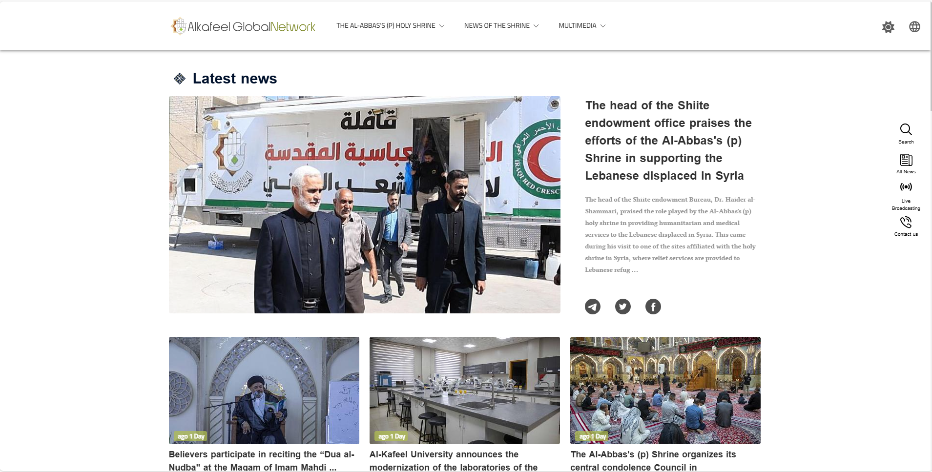 الشبكة الرسمية للعتبة العباسية المقدسة على الشبكة العنكبوتية.