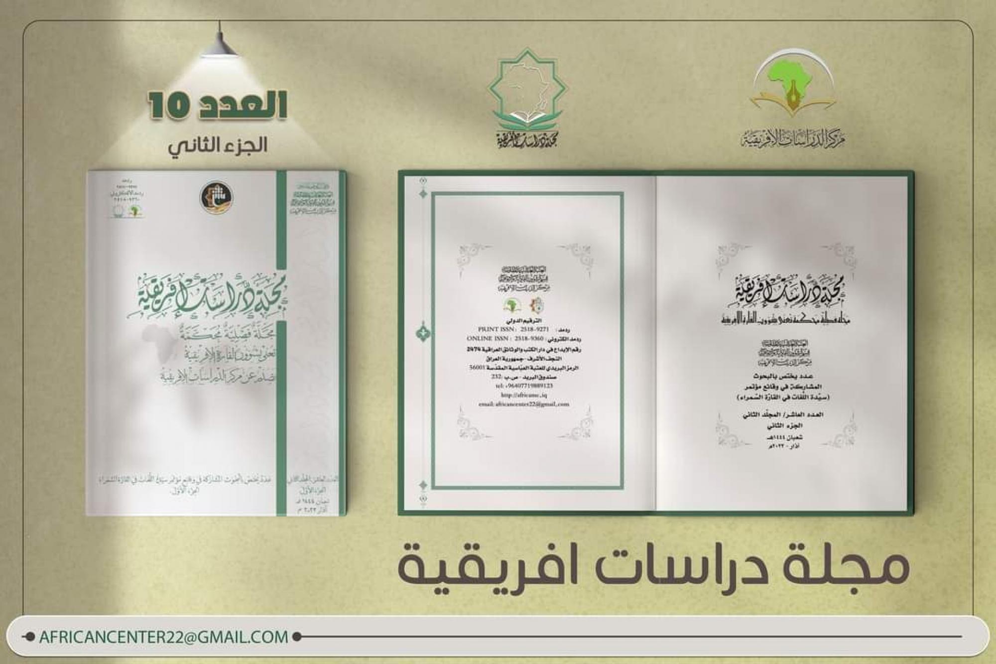 مجلة علمية فصلية محكمة متخصصة في الدراسات الإفريقية تصدر عن مركز الدراسات الافريقية في قسم الشؤون الفكرية والثقافية التابع الى العتبة العباسية المقدسة.
